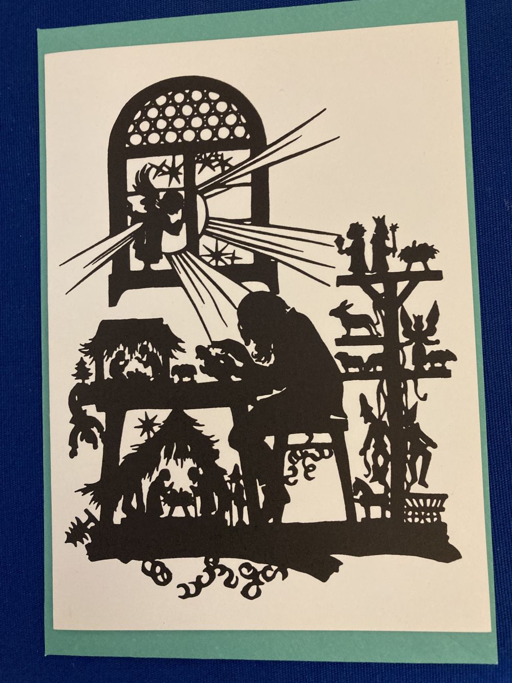 Karte mit Umschlag nach dem Scherenschnitt von Elisabeth Emmler.